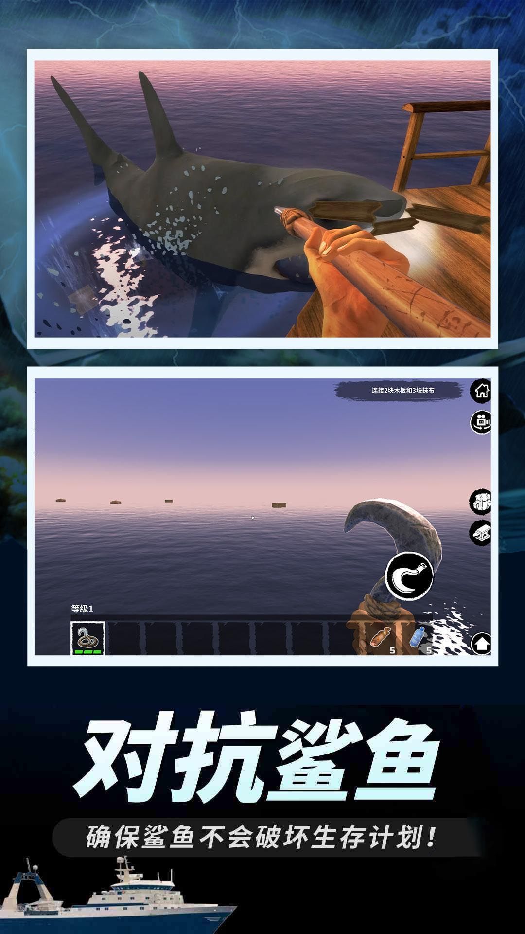 2、玩家可以利用收集到的资源建造和升级木筏,提高生存能力;