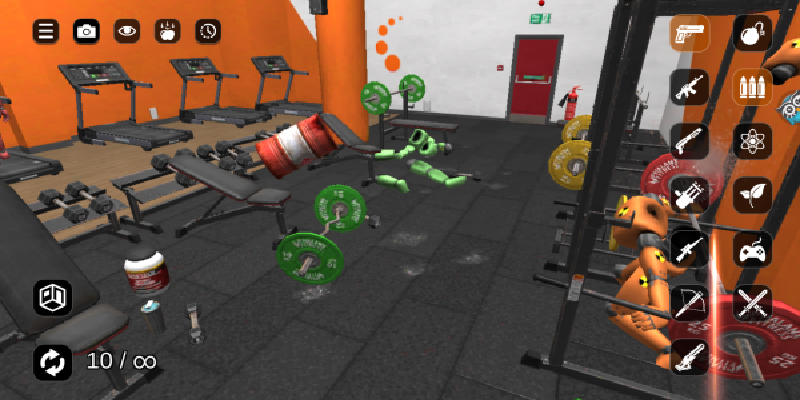 2、点击右边的道具,最上方的是手雷,随意的放置在场景中,炸得机器人倒地。