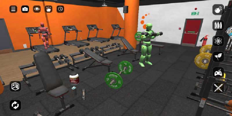 1、进入游戏后,你可以看到一个机器人正在锻炼,右边的是各种道具。