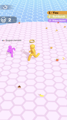 抢食物大作战游戏是一款采用3D立体风格的竞技类游戏,游戏以各种不同颜色的橡皮人为角色,玩家需要操控代表自己的橡皮人在地图中来收集各种不同的食物,从而增加自己的体积。在搜寻的过程中玩家还需要注意躲避比自己体积大的其他玩家,避免被其他玩家消灭。