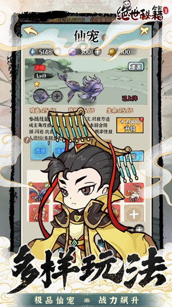 2、仙宠养成功能可以驯养宠物并升级,解锁新技能助战。