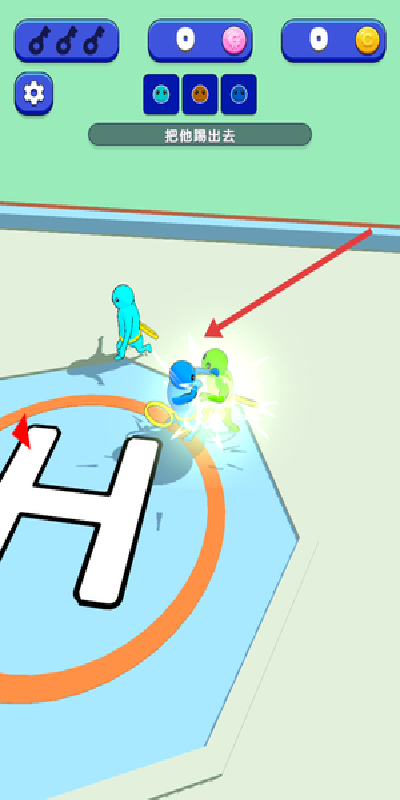 3、持续应对多个敌人攻击,完成“把他踢出去”的关卡目标,确保不被提前淘汰出局。