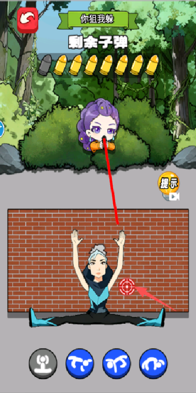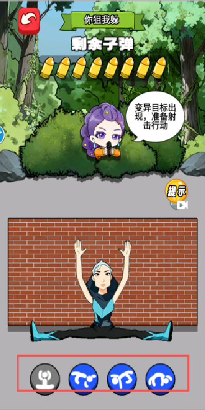 1、在游戏中,我们需要根据不同的情况,去选择不同的姿势进行子弹躲避。