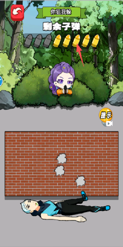 4、如果我们没能躲避子弹,就会倒下,挑战就是失败了,重新开启游戏吧。