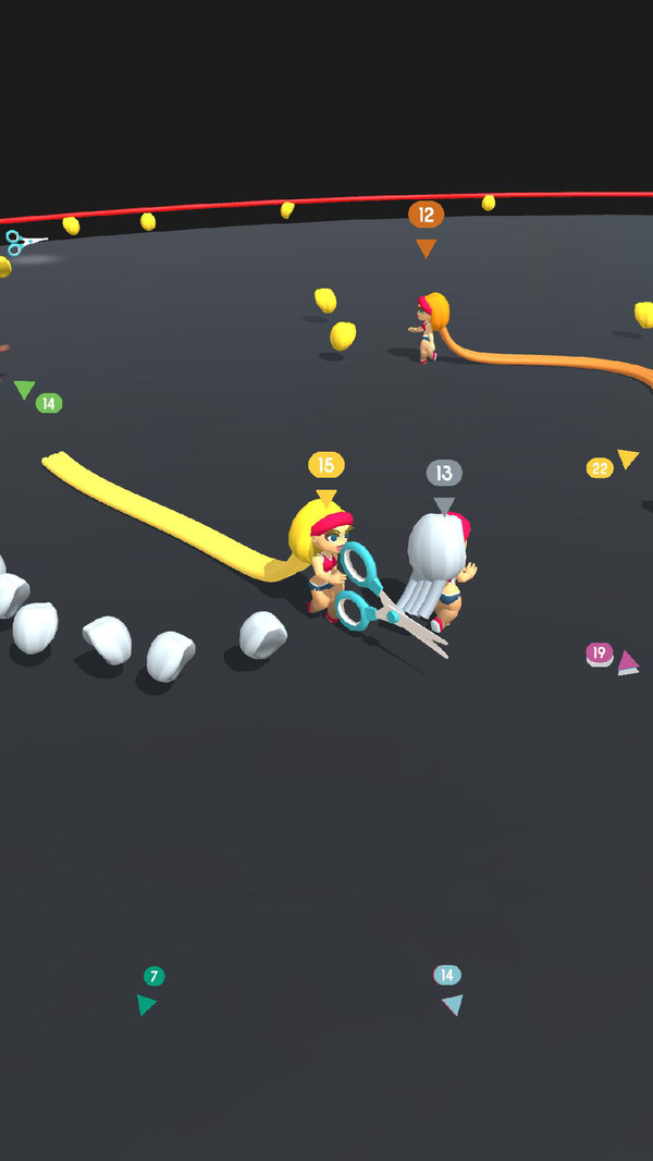 长发公主竞赛手机版:控制小女孩在地图上跑来跑去,吃掉彩色头发碎片就能让辫子变长的,辫子越长得分越高,但要小心其他玩家,他们可是会拿着剪刀专门剪别人的头发呢,看到就得赶紧躲开,可以长按加速键能快速冲刺,不过要算好时间,不然容易撞上障碍物,游戏就会结束了。