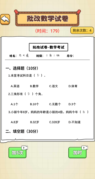 3、我选的是批改数学试卷,你要仔细阅读题目,然后判断出对还是错。
