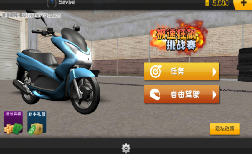 1、进入游戏后,你可以看到一辆酷炫的摩托车,还有任务和自由驾驶选择。