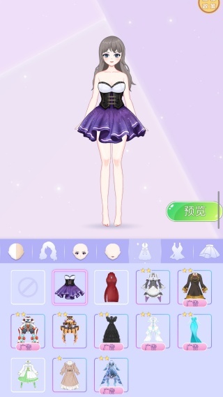 2、在自由装扮模式中,使用丰富的衣柜物品,为不同风格的动漫女孩设计独一无二的日常或派对造型。