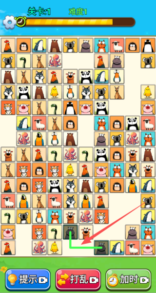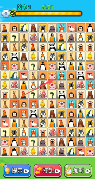 1、经典的连线消除闯关玩法,直接点击相同的元素进行消除,消除所有去闯关。