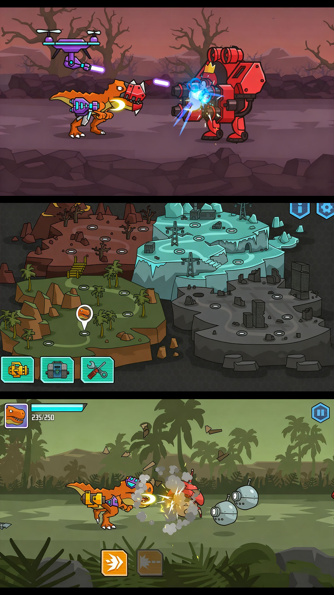 3、整体玩法是动作闯关加成长系统,一边打一边攒资源,慢慢把恐龙变得更酷更厉害。