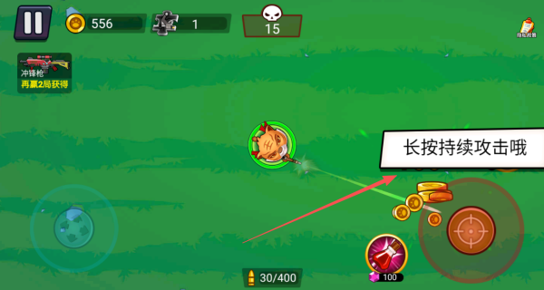 3、我们直接长按攻击的按钮就可以持续追踪的进行攻击了,非常不错的。