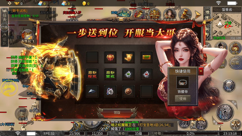 2、职业选择有讲究,战士适合莽,法师适合偷,道士适合养宠物,选对职业赢一半。