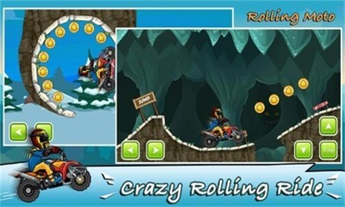滚动摩托车游戏是一款玩法刺激有趣的模拟驾驶摩托车竞速类型的游戏,游戏玩法非常简单,玩家在游戏中驾驶摩托车进行闯关,点击屏幕就可以控制行使方向,跳跃躲避关卡中的障碍物,还可以在游戏中使用各种翻滚动作,获得加分。喜欢这种摩托车驾驶类型的游戏就快点击下载吧,一起体验这款游戏的魅力吧!