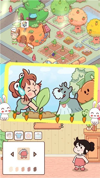农场假期是一款休闲益智的模拟经营农场类小游戏,游戏画风特别的可爱生动,画面温暖治愈,深受女性玩家的喜爱。在这款游戏中玩家们需要经营自己的农场,游戏里面可以种植各种蔬菜植物,收获成熟的蔬菜植物可以在商店出售,换取金币,金币可以装扮自己的农场,或者解锁更多弄做的种子,进行种植浇灌。喜欢这种类型的玩家们一定不能错过这款小游戏。