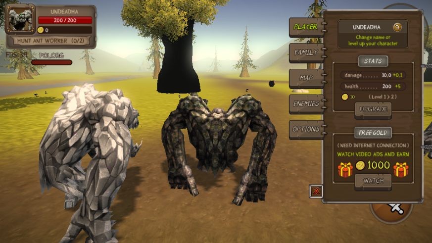 采用最原始的战斗玩法,岩石巨人巡逻森林,举起拳手消灭怪兽。