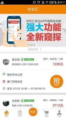 2.抢回程车:实时搜罗回程车资源,为货主提供更多特惠回程车路线;