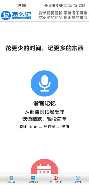 怎么记单词app:这是一款可以提供便捷记单词的app,准备了很多不错的单词背记的技巧。提供了很全面的单词谐音背记方式,软件中还为大家准备了很多优质的背记工具,遇到不会的单词直接查询,快速纠正大家的发音,查看每一次单词的详细意思。