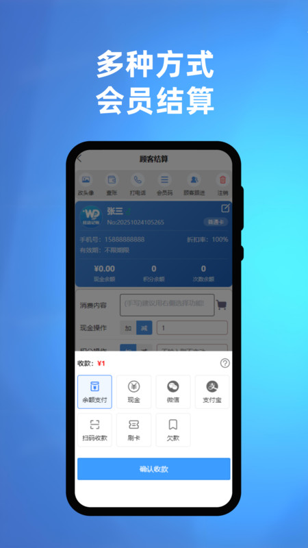3、简单高效的收银流程,扫码收款加积分扣减,操作便捷,效率倍增。