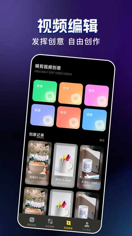 视频剪辑π软件是一款体验科技创作的软件,提供视频全剪功能,选择适合的工具进行剪辑美化,制作出来的视频更专业,还可支持多格式转换,实时兼容不同的视频,根据需求自由创作,智能压缩你的视频,让你视频变得更小巧,不占内存,但是画质感仍保持清晰效果。