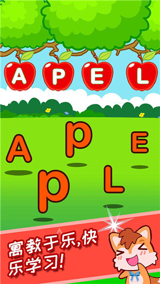 在学习娱乐的过程还可以进行亲子互动,妙趣味横生,寓教于乐,锻炼逻辑思维,启蒙早教.充分研究了3-8岁幼儿学习与发展的基本规律和特点,可激发孩子的学习兴趣,让你的孩子在娱乐中学到知识,游戏中融合了字母卡片学习,字母苹果拼图,单词拖拖乐(字母拼图)等小游戏,