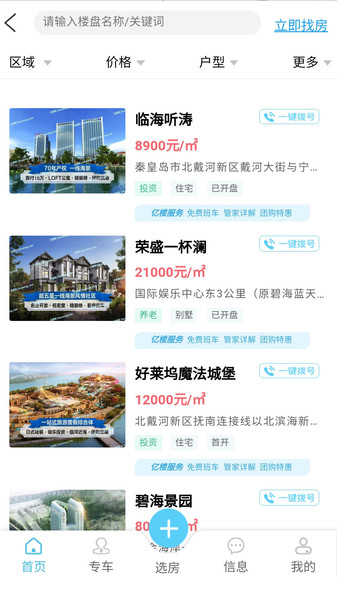 精准搜索:支持区域、价格、类型、户型等多维度搜索和综合搜索